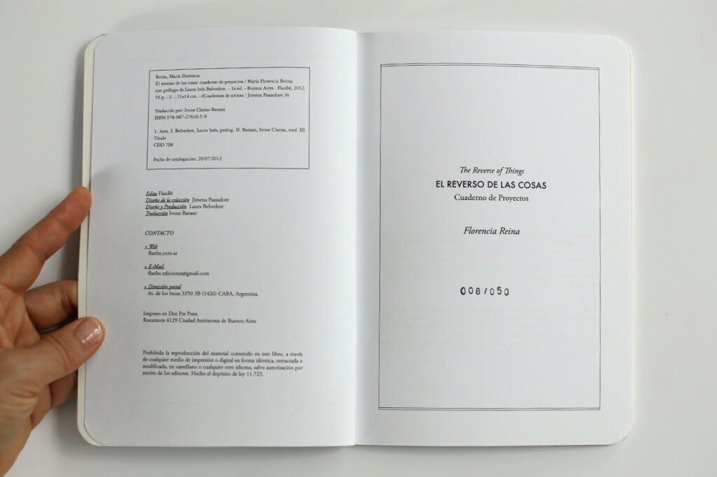 En 2012 Jimena Passadore me invitó a editar una publicación con el trabajo de Florencia Reina, diseñadora y fotógrafa, quien había sido amiga cercana de ambas. La quería incorporar a la serie Cuaderno de proyectos de su editorial Flanbé, especializada en diseño y artes visuales.