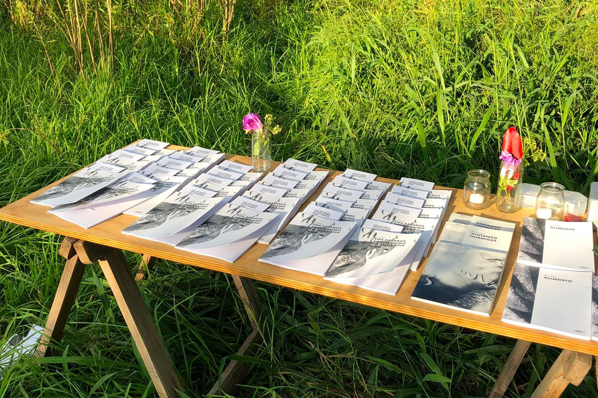 En Libra el diseño es simple, pero su naturaleza de primer libro, reinaugura en cada edición la importancia del objeto, de esta primera concreción. Cada presentación, ideada por sus autorxs, es el contexto elegido por ellxs para su recibimiento.