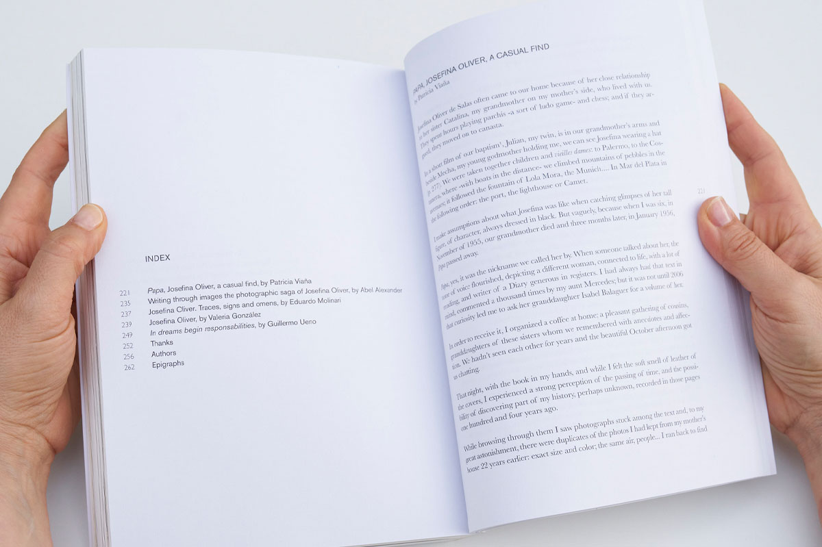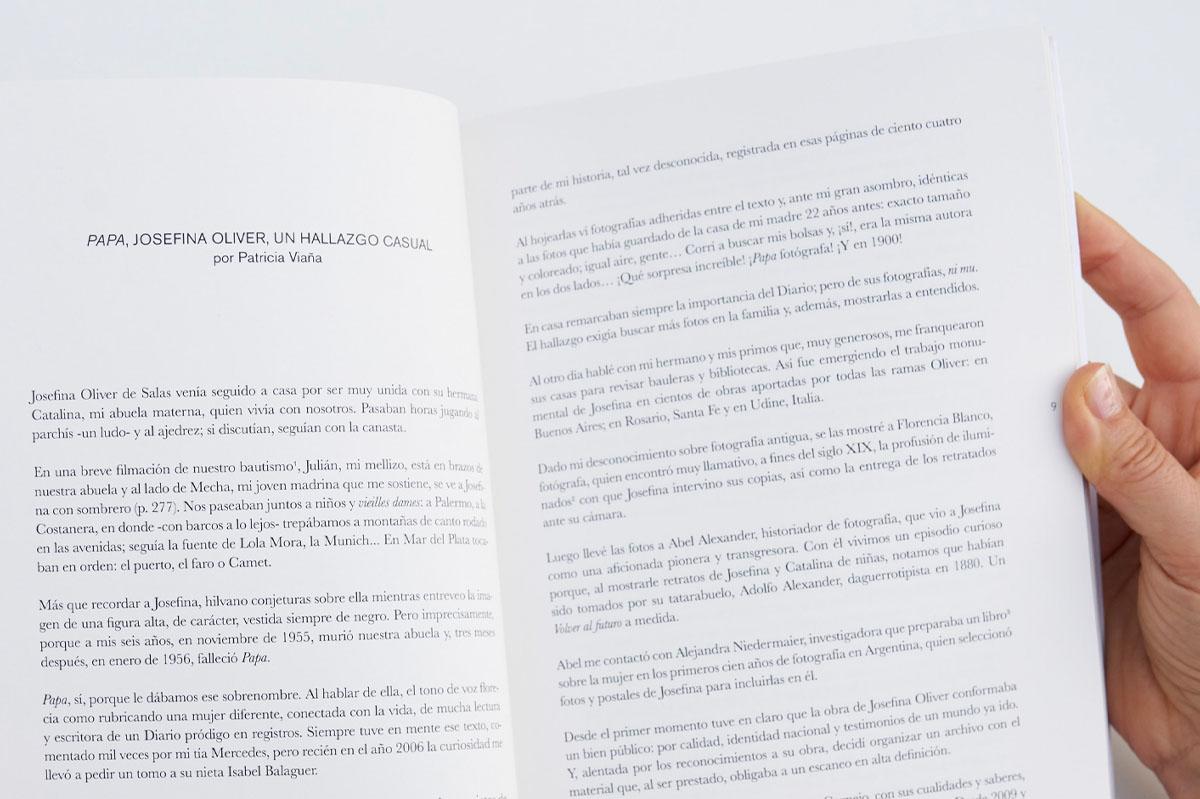 En 2016, Patricia Viaña y Guillermo Ueno me convocaron para diseñar un libro sobre el Archivo Josefina Oliver. Josefina había sido una fotógrafa aficionada de principios del siglo XX. Patricia reunió sus fotos, escritos y collages y así la dio a conocer, iniciando además, un camino autodidacta como investigadora en fotografía argentina.